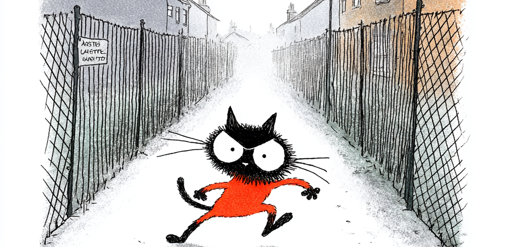 就在这时,邻居家的猫 “Oscar” 出现了。它不紧不慢地挡在路中央,眼睛盯着母子俩。